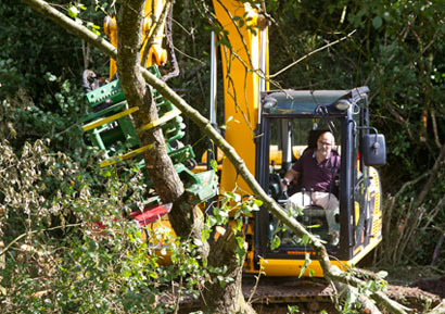 13 ton JCB JS130 Digger with tree shears and driver for hire in North Devon